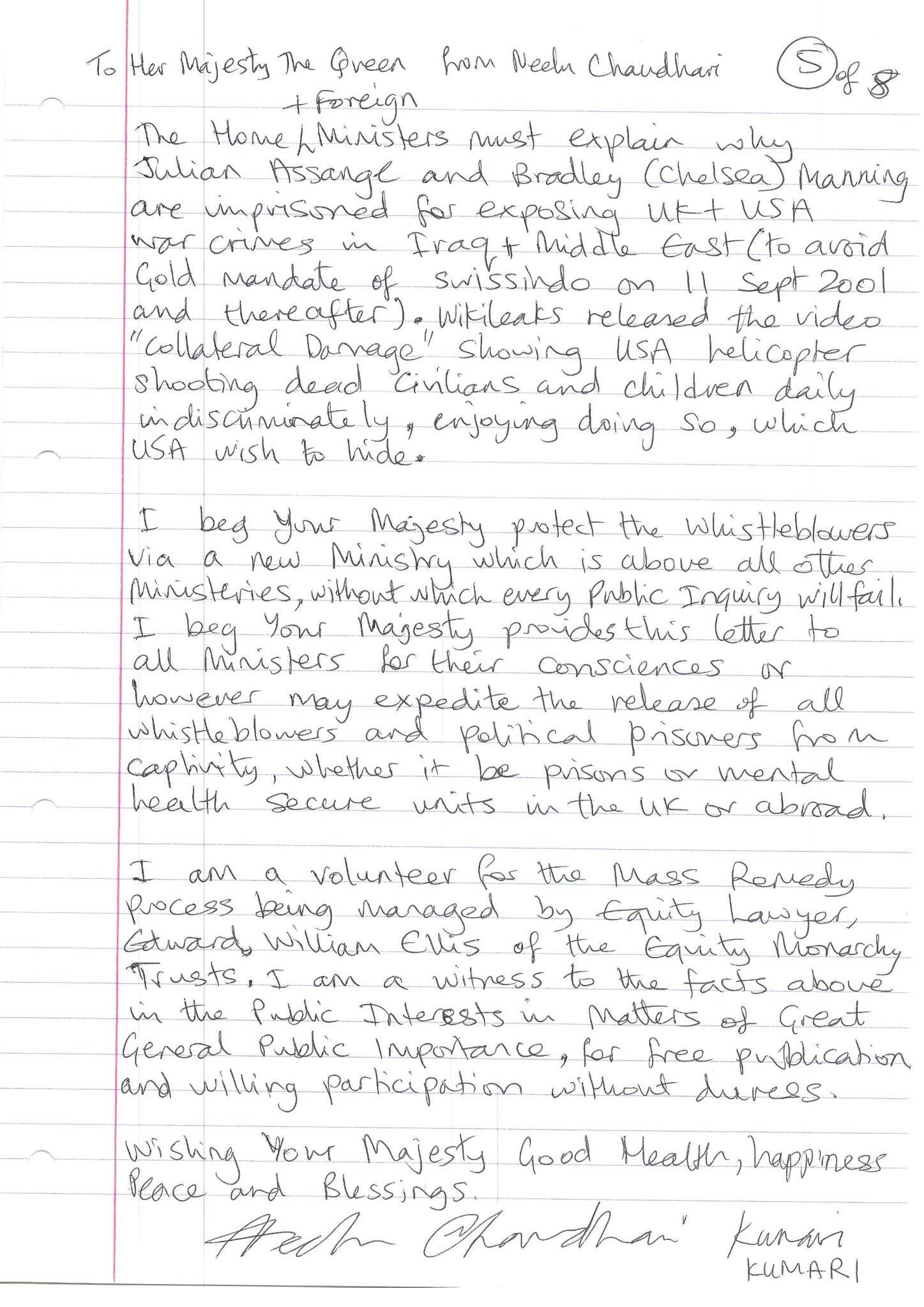 As I say, I would urge everyone to do the same, write to Her Majesty The Queen to request the release of all Whistleblowers, Protected Witnesses and Credible Electoral Candidates being held hostage as political prisoners in State Discredit Frauds and Election Frauds to deny the Citizens their choice of Elected Leaders in favour of back-door script-reading Actors and Impostors.