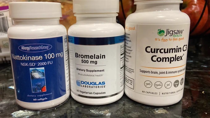 Nattokinase 2000u BID; Bromelaine 500mg Daily; Curcumin 500mg BID